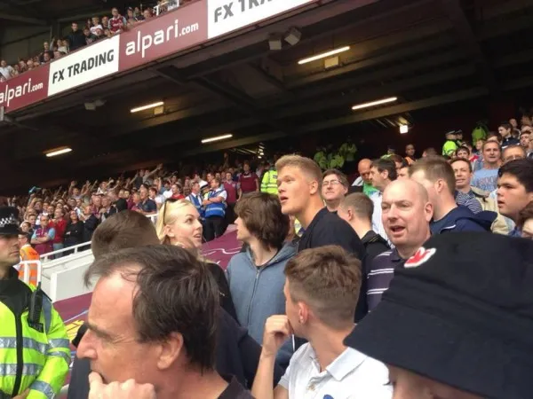 Cardiff City striker Andreas Cornelius, who was injured and unable to play in the Welsh club’s opening game yesterday, stood with the Cardiff supporters in the away section of West Ham United’s Boleyn Ground.