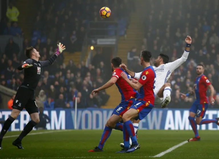 Costa headed home Cesar Azpilicueta’s cross in the 43rd minute at a foggy Selhurst Park to send Antonio Conte’s men nine points clear.