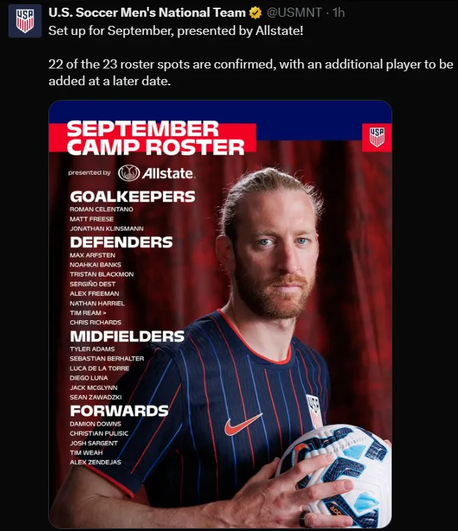While Pulisic returns, the roster also came with surprises as a number of big names were left out. Notably, Serie A standouts Yunus Musah (AC Milan) and Weston McKennie (Juventus) were omitted despite featuring in the first games of the 2025–26 season.