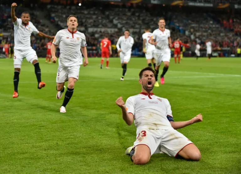 Sevilla were kept on a tight rein in the opening half although Gameiro, with 28 goals this season including seven in eight Europa League games, had his first sniff with an ambitious overhead kick after Coke’s cross on the right following a corner.