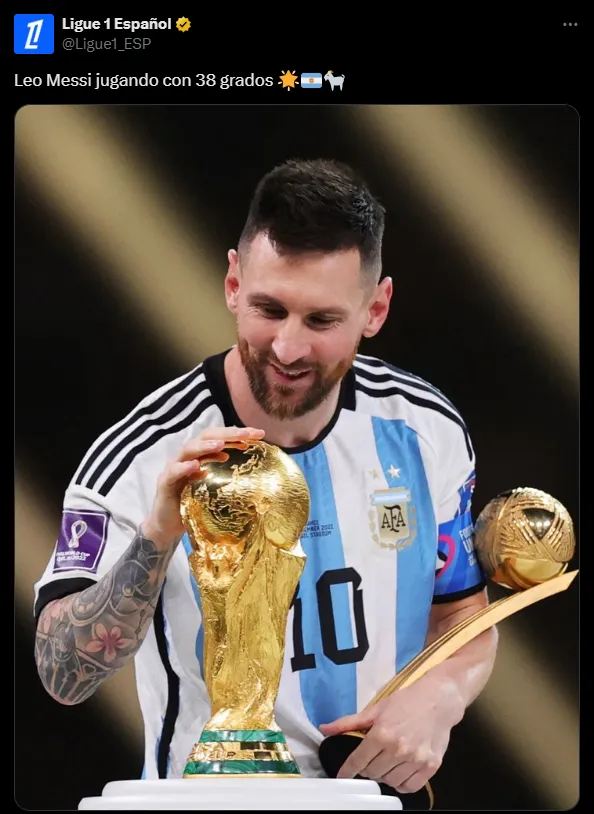 These comments seems to have reached Ligue 1’s Spanish account in Spanish, who didn’t doubt to address Lionel Messi’s biggest achievement in the middle east: the 2022 World Cup win in Qatar.