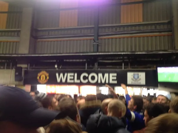 Then the singing starts and that tingle runs down your spine. Everyone is tightly packed, bouncing around, hands in the air, beer flying everywhere; it’s like being at a concert in many respects. Often, the brilliant atmosphere forged under the stand fails to transmit when everyone meanders up to take their seats. But there was no danger of that at Old Trafford and the Evertonians were in superb voice from the first to last minute.