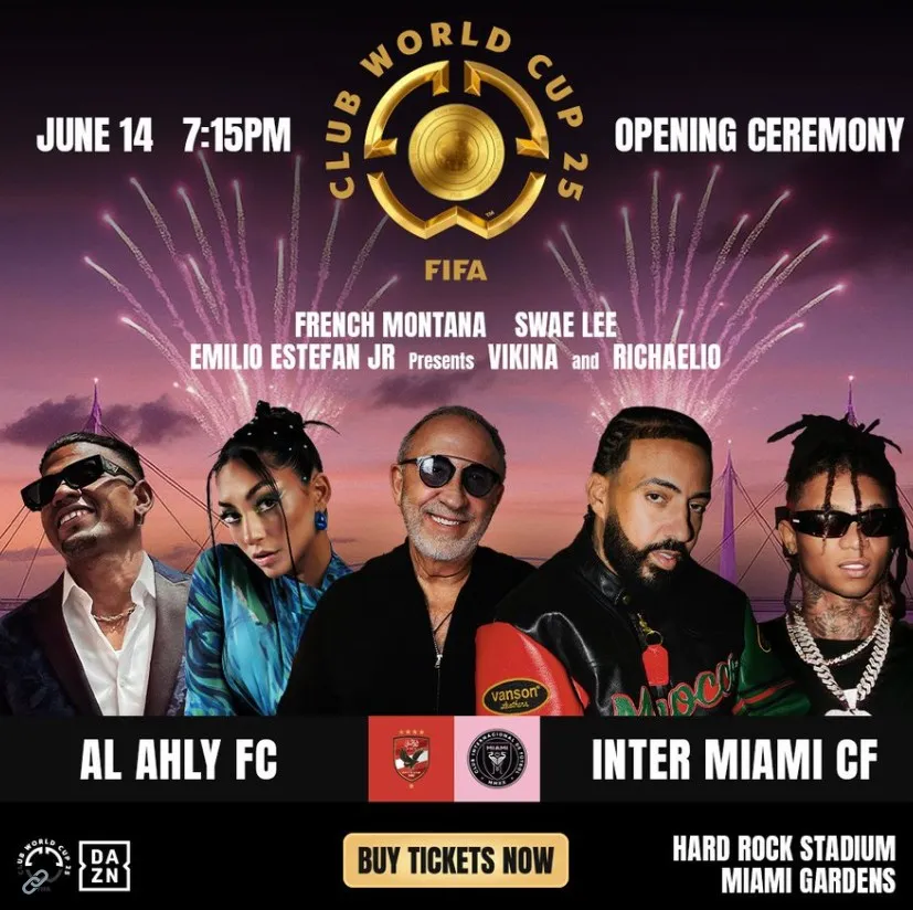 The opening ceremony of the 2025 FIFA Club World Cup will feature a dynamic lineup of artists. Rising stars Vikina and Richaelio will bring Latin flair to the stage, alongside French Montana and Swae Lee, setting the tone for the soccer event.