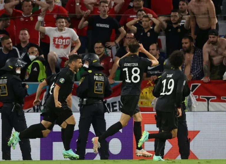 After scoring the equaliser, Germany midfielder Leon Goretzka made a heart gesture with his hands to Hungarian fans, who had turned their backs to the pitch before kick off during the German national anthem.