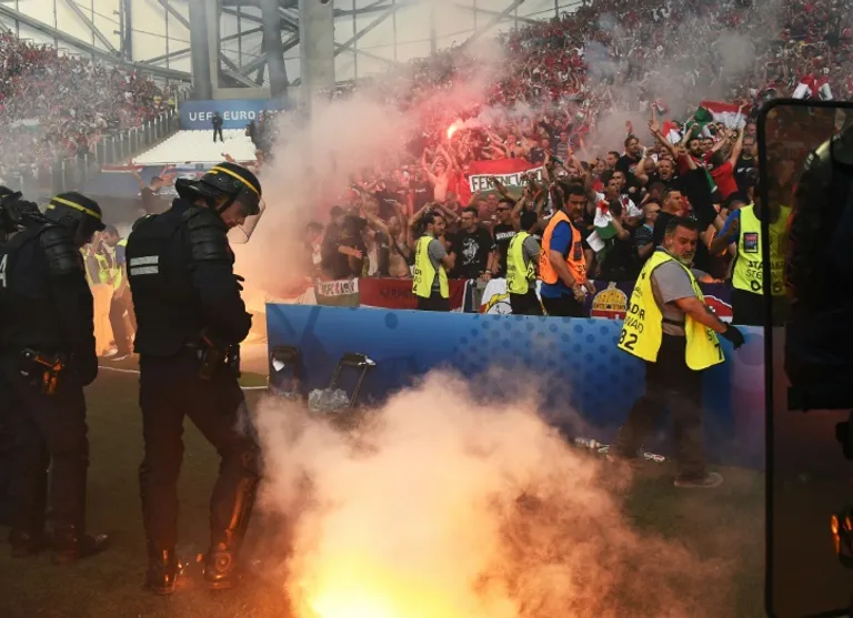 A fourth Hungarian caught in Marseille’s city centre with a bag containing flares, a ski mask and a gum shield was given a suspended 15 days jail term. Prosecutor Olivier Sabine called it “the perfect hooligan kit.”
