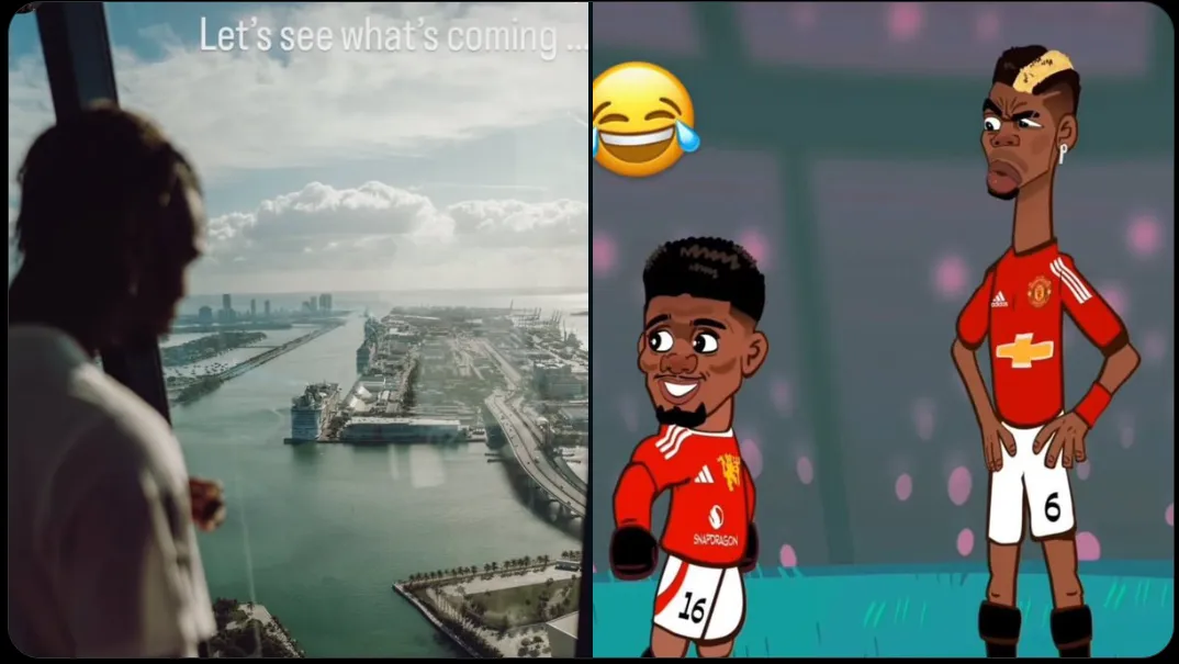 Pogba has sparked curiosity with cryptic social media posts hinting at his next move. Recently, he shared a message saying, “Let’s see what’s coming…” and an Instagram story featuring him and Manchester United’s Amad Diallo in a cartoon illustration.