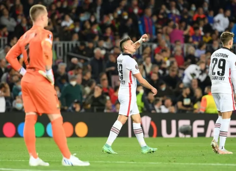 A superb long-range effort with his right foot from 25 metres at Camp Nou flew in off the underside of the crossbar to help Frankfurt win 3-2 at Barcelona for a 4-3 aggregate win in the quarter-finals.