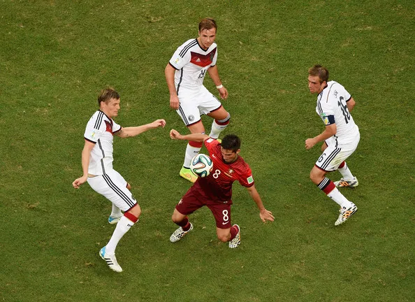 Against Algeria, the Germans passed the ball around at a very slow tempo, making it easy for the Fennec Foxes to hassle them off it and spring dangerous counter-attacks. Lahm, Schweinsteiger and Kroos are all capable of knocking it round at a brisk pace, and they’ll need to do exactly that against a very powerful, physical and technically adept French midfield.