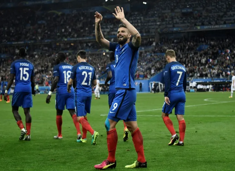 Giroud fired France ahead after just 12 minutes at a rain-drenched Stade de France and got his second after the break as the hosts put down the tournament giantkillers who beat England 2-1.