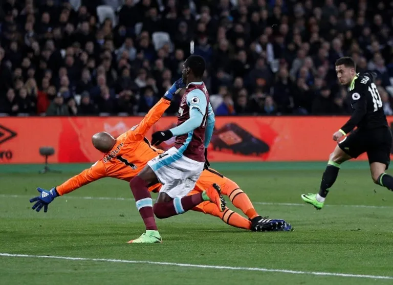 Hazard finished off a lightning counter-attack in the 25th minute and Diego Costa’s 49th league goal for Chelsea rubber-stamped victory before Manuel Lanzini belatedly replied in stoppage time.