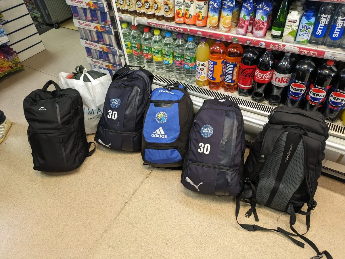 If you don’t believe me, here’s a photo of our backpacks shortly before we dropped them off at a luggage storage location in Edinburgh, Scotland. The extra Primark bag was just for some souvenirs we picked up earlier on our trip.