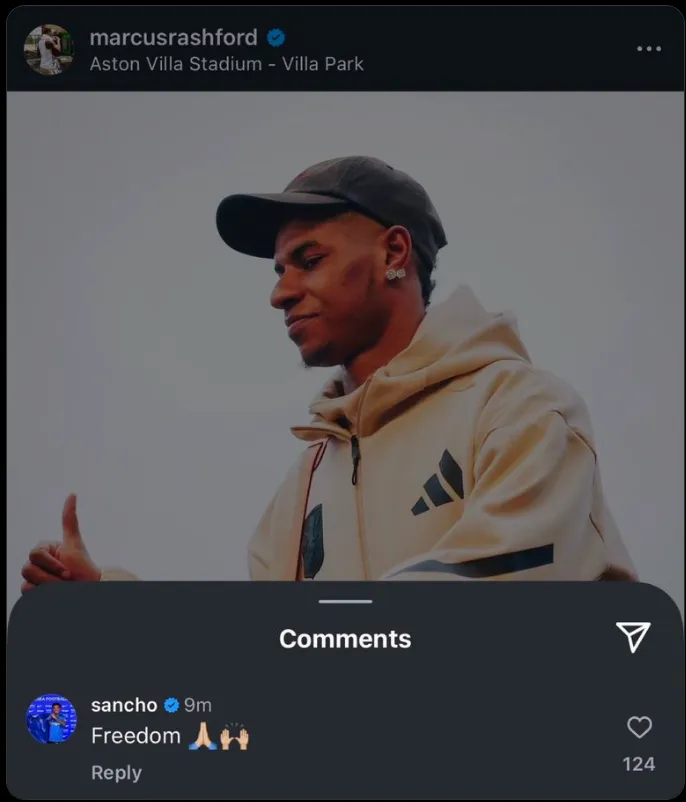 Following Rashford’s debut for Villa in the FA Cup against Tottenham Hotspur, the English forward took to Instagram to express his gratitude: “Thank you for the warm welcome. Great team performance,” he posted. However, it was Sancho’s comment—simply stating “Freedom“—that grabbed the attention of fans, which many interpreted as a jab at United and his departure.