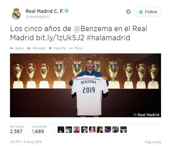 Real Madrid has announced that striker Karim Benzema has agreed to extend his contract with the European champions until June 2019.