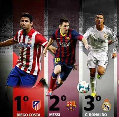 The top three all won again at the weekend as Barcelona, Real Madrid and Atletico Madrid continue to dominate La Liga. Neither Barca nor Los Blancos are in vintage form, while Diego Costa and Cristiano Ronaldo continue to eclipse Lionel Messi as Pichichi contenders.