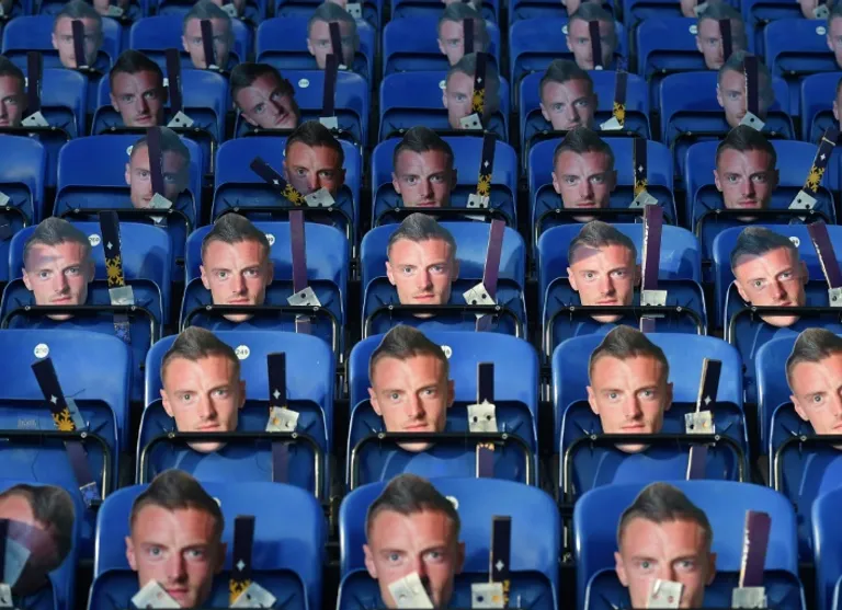 Pictures circulating on social media showed rows of Vardy masks placed on the blue seats at Leicester’s King Power Stadium ahead of their home game with Everton.