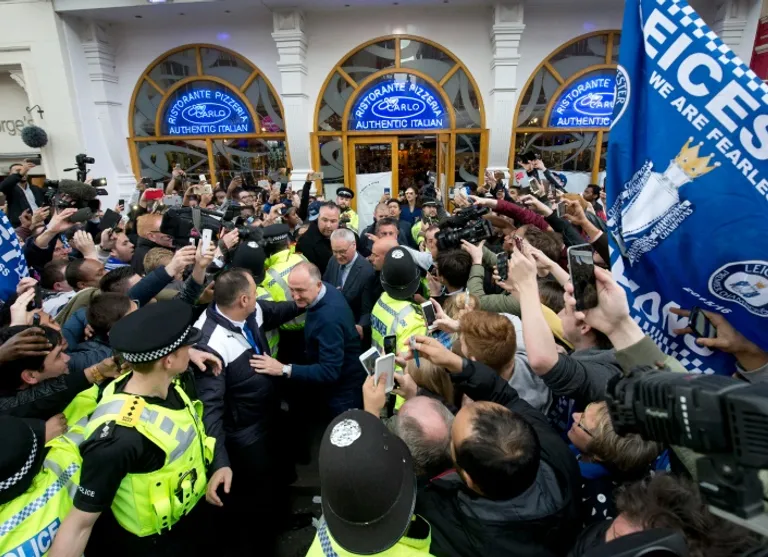 After players and fans celebrated late into the night, the team including Italian manager Claudio Ranieri and top scorer Jamie Vardy dined out at the city’s San Carlo restaurant Tuesday to celebrate becoming champions for the first time.