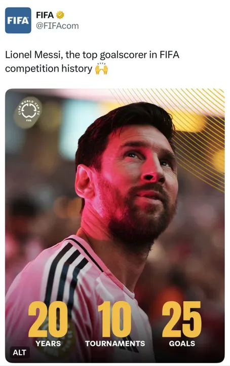His goals in the Club World Cup have come in key moments — notably in 2009 and 2011 with Barcelona, and now in 2025 with Inter Miami. This latest one, the 25th, came in dramatic fashion and helped break the tie with Marta, the Brazilian forward widely regarded as the greatest in women’s football history.
