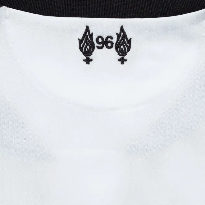 To commemorate the tragic events of Hillsborough, the 96 emblem, encased by the eternal flames sits at the nape of the neck.
