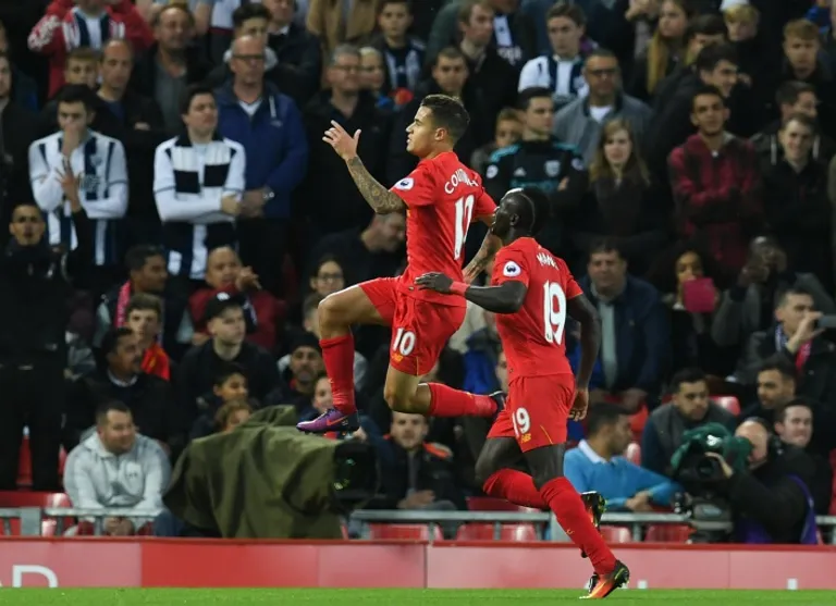 Liverpool (AFP) – Sadio Mane and Philippe Coutinho scored a pair of crackers to give Liverpool a 2-1 win over West Brom on Saturday but Gareth McAuley denied them a place at the top of the Premier League.