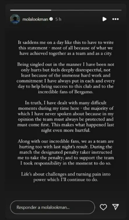 His missed penalty, saved by Simon Mignolet, prompted Gasperini’s sharp rebuke. Lookman responded with a statement on Instagram, expressing his disappointment and emphasizing his dedication and commitment to the club. He also noted his history of facing challenges during his time at Atalanta, implying a long-standing issue between the two.