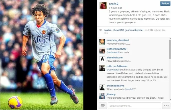 The Dutch manager has also received a fitness boost from United right-back Rafael da Silva. The Brazilian posted a picture of himself from 2009 on his Instagram page with the comment: “5 years ago young skinny Rafael good memories. Back in training ready to help. Let’s go.”