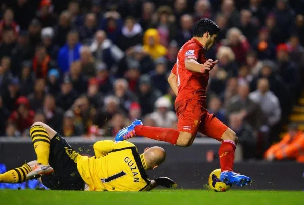 “If Guzan’s going to be silly enough to come rushing out like that on a wet pitch, sliding out. What is Suarez expected to do here?