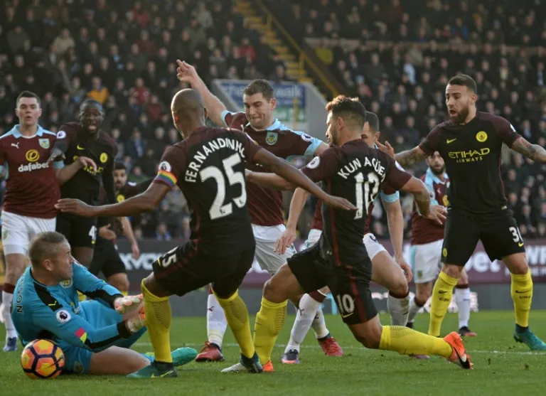 Aguero’s scrappy 37th-minute equaliser was plundered from close range after Burnley failed to clear a corner.