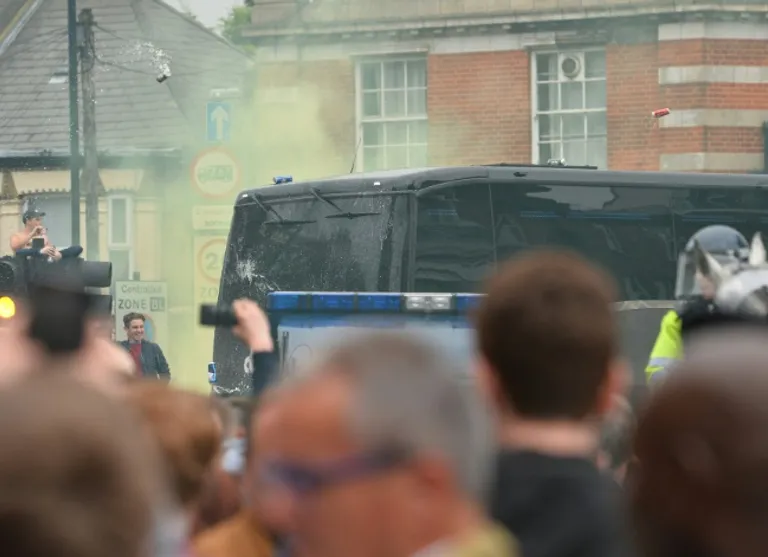 “We are aware that a number of items were thrown towards Man Utd’s coach this evening,” the Metropolitan Police football unit wrote on Twitter.