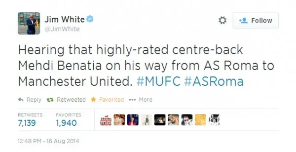 Reports continued to surface as Jim White from Sky Sports broke news of a deal between the two clubs (via his Twitter account).