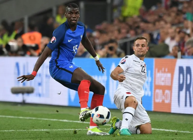 French midfielder Paul Pogba and other players were seen slipping on the Velodrome turf and chunks were clearly cut up in France’s 2-0 Group A win over Albania on Wednesday.