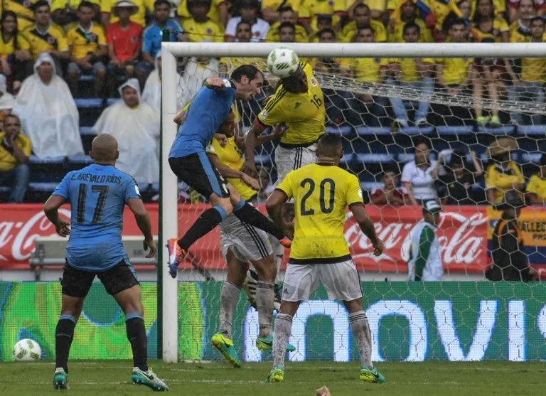 Mina, who plays for Brazilian side Palmeiras, soared high in the 84th minute to send a looping header beyond Fernando Muslera at a rain-lashed Estadio Metropolitano in Barranquilla.