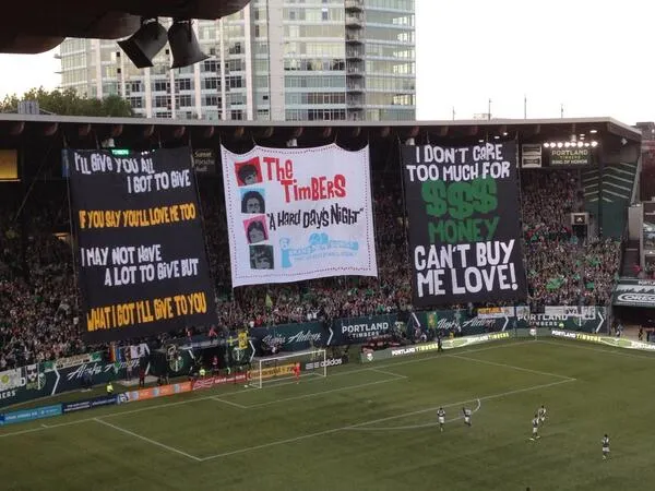 The Portland Timbers supporters tifo unveiled on Sunday night at Jeld Wen field may be my favorite tifo of this season. As an obsessive Beatles fan, it may in fact go down as one of my favorites ever.
