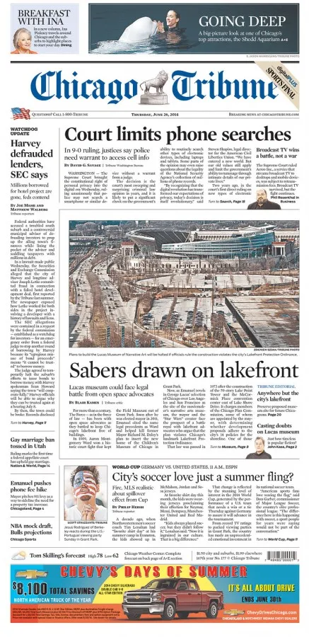 The Chicago Tribune lamely leads with a wet towel story questioning our love for soccer. But at least they’re talking about the game.