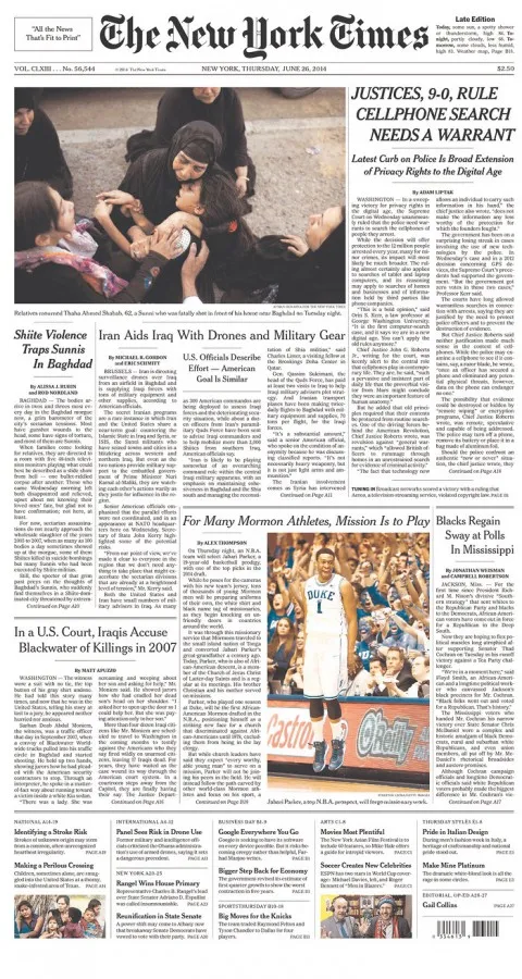 The New York Times finds room for a story on Mormon athletes and a teaser pic for a story on ESPN’s Men in Blazers, but nothing for USA-Germany.