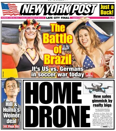 The New York Post luridly leads with a comparison of an All-American woman and Teutonic beauty.