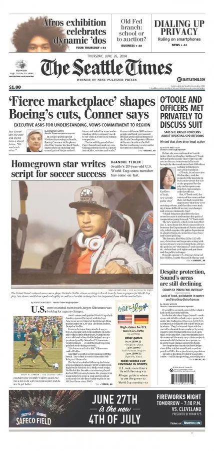 Checking in on America’s soccer heartland, the Seattle Times highlights local star DeAndre Yedlin as part of its exhaustive coverage.