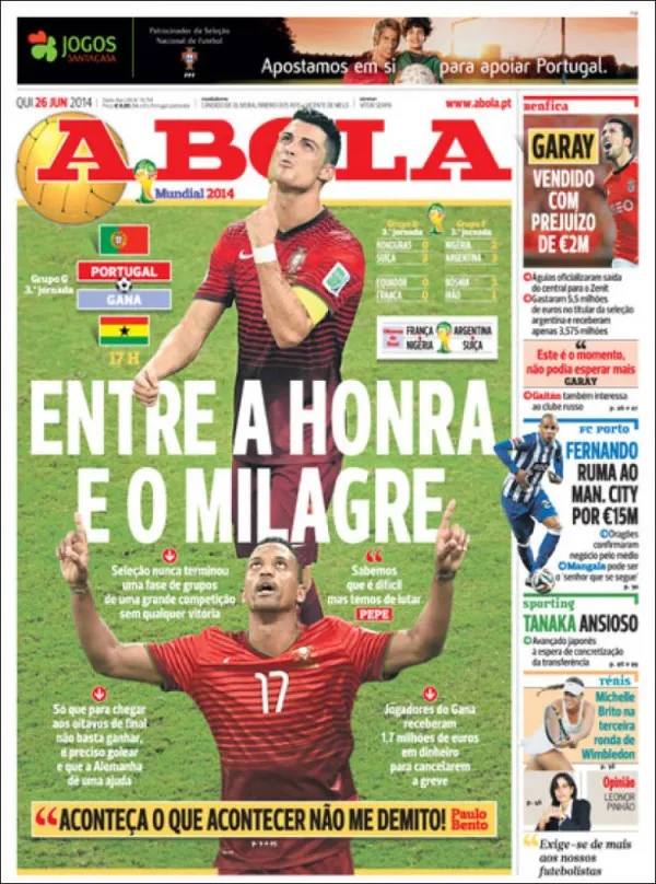 Over in Portugal, A Bola poetically acknowledges that they are left chasing honor but needing divine intervention. O Jogo says that while faith moves mountains “praying is not enough” for the “miraculous blowout” needed to advance.