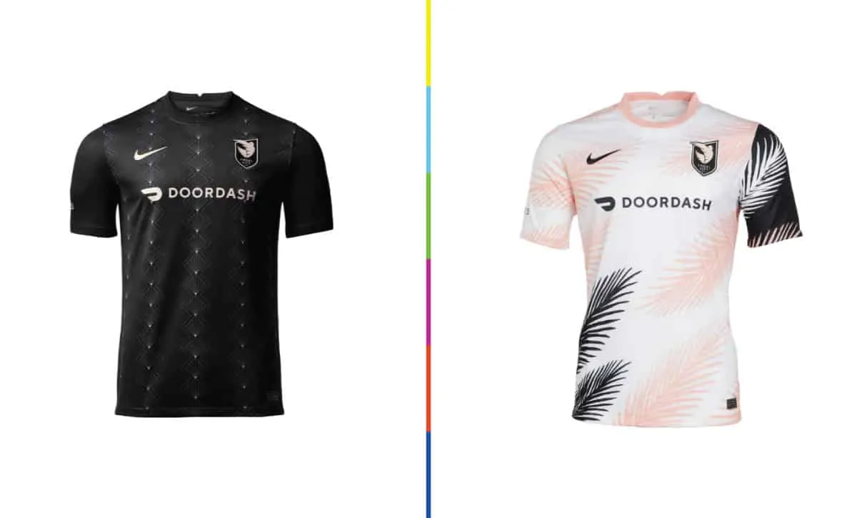 Away: The more flamboyant secondary is one of the best looks in the league – just garish enough without going over the top. The pink, white and black palm fronds combine to almost create a subtle zig-zag striping, and the contrasting black left sleeve is nice unique touch. Where MLS side Inter Miami CF and Adidas have missed an empty-netter from the penalty spot with their designs (using similar colors and elements), Angel City FC & Nike have hit an absolute screamer from 30 yards into the upper 90 with this one.