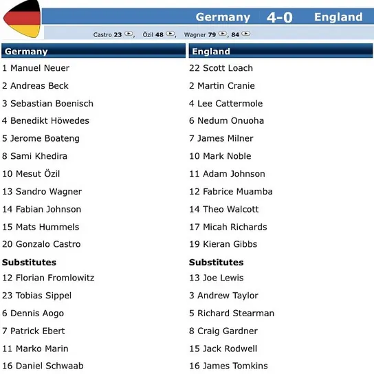 In the summer of 2009, England and Germany faced off in the final of the UEFA European Under-21 Championship. The two sides had met earlier in the competition and had drawn 1-1. The Germans ended up routing the Stuart Pearce-led English side 4-0. Out of the players in that 2009 German U-21 squad*, six of them are starters for the German World Cup 2014 team. And most, if not all six, will play in the World Cup semi-final on Tuesday against Brazil.