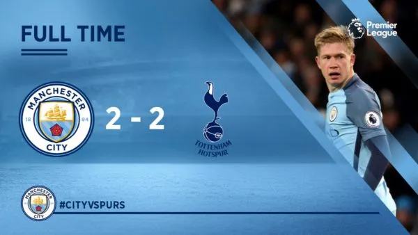 The game between Man City and Spurs ended in an entertaining 2-2 result in one of the most exciting matches of the 2016/17 Premier League season.