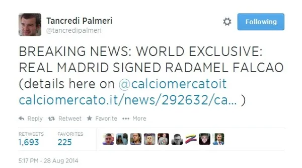 News of Falcao’s move to Madrid began surfacing on Thursday after CNN and beINSPORT contributor Tancredi Palmeri claimed a deal between the clubs had been reached on his Twitter account.