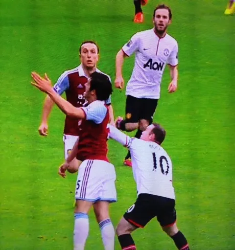 Sam Allardyce was left frustrated with both Manchester United goals after the Hammers’ 2-0 defeat at Upton Park. The first goal was an outstanding moment of genius from Wayne Rooney, who spotted Adrian out of his goal. Rooney then fired a volley from 54 yards straight over a helpless goalkeeper and into the net. However, it was the incident prior to the goal that annoyed Allardyce. He was adamant that Rooney fouled James Tomkins.