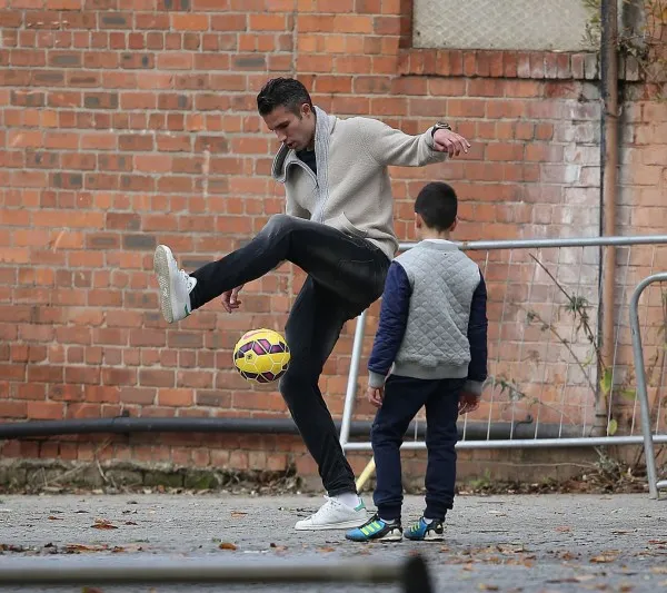 Manchester United striker Robin van Persie was spotted having a kickabout on the streets of Manchester.