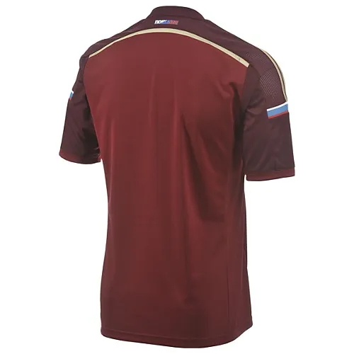 Russia’s home shirt for World Cup 2014 is maroon with gold stripes down the sleeves, as well as different shade of maroon as a secondary trim color.
