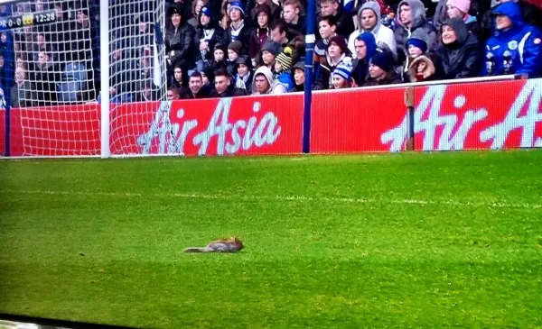 The incident happened in the 14th minute of the Championship game when a squirrel ran on to the pitch and stopped the game. Leicester City’s David Nugent then chased the squirrel around the pitch before the game could be re-started.