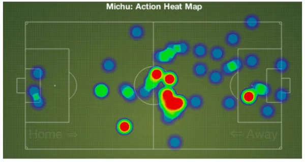 Wilfred Bony is a clinical finisher and possesses great aerial threat. Even though he might not be the fastest, he has an eye for the goal with two strong feet and ferocious ball striking ability. Michu, as we saw from the last season, loves to play narrow and prefers to be in the central areas of the pitch making runs behind the opposition defense. This benefits the Laudrup system as the Dane wants his wingers to be narrow and to help with the ball retention. This will free up Michu and Bony up front. Michu’s winning headers could also be used to set up players up front, while the build up play is definitely expected to improve. This is evident from the following heat map of Michu against Manchester United last season.