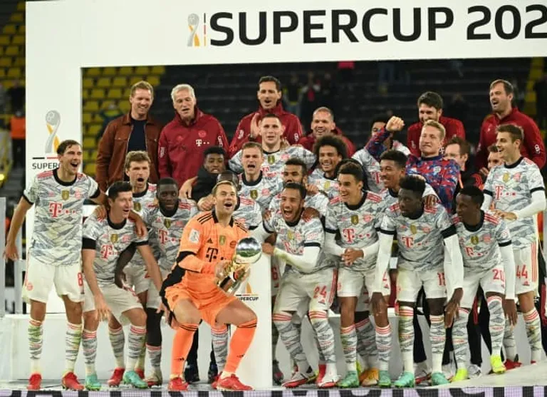 Bayern swept aside league rivals Borussia Dortmund 3-1 on Tuesday to win the German Super Cup with Robert Lewandowski scoring twice in a stellar performance.