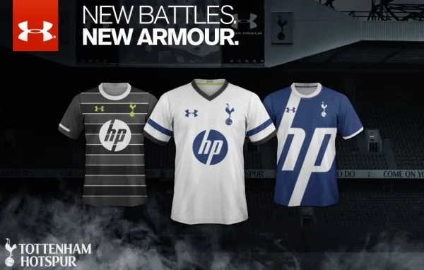 In what appears to be the new official shirts from Under Armour, the Tottenham Hotspur shirts feature the name of what is allegedly the new shirt sponsor for Spurs — HP. Not HP Sauce, but Hewlett Packard.