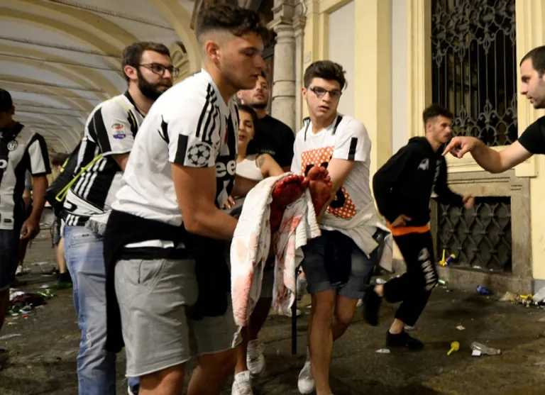 Turin (Italy) (AFP) – More than 1,500 people were injured, three seriously, after a bomb scare triggered a stampede among Juventus fans watching the Champions League final in Turin, local authorities said Sunday.
