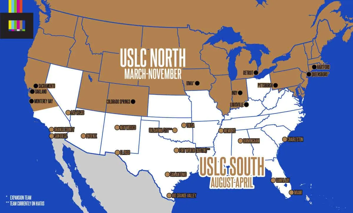 The USL Championship presents an opportunity to showcase another benefit of a split league/season setup: flexibility. Counting all the existing independently-owned teams (the handful of remaining MLS-owned teams are all eventually leaving to MLS NEXT Pro anyway), plus the two on hiatus and two planned expansion teams, USLC is at 27 teams. That makes for an uneven split, but due to geography it makes things even tougher, as USL is more populated in the South.